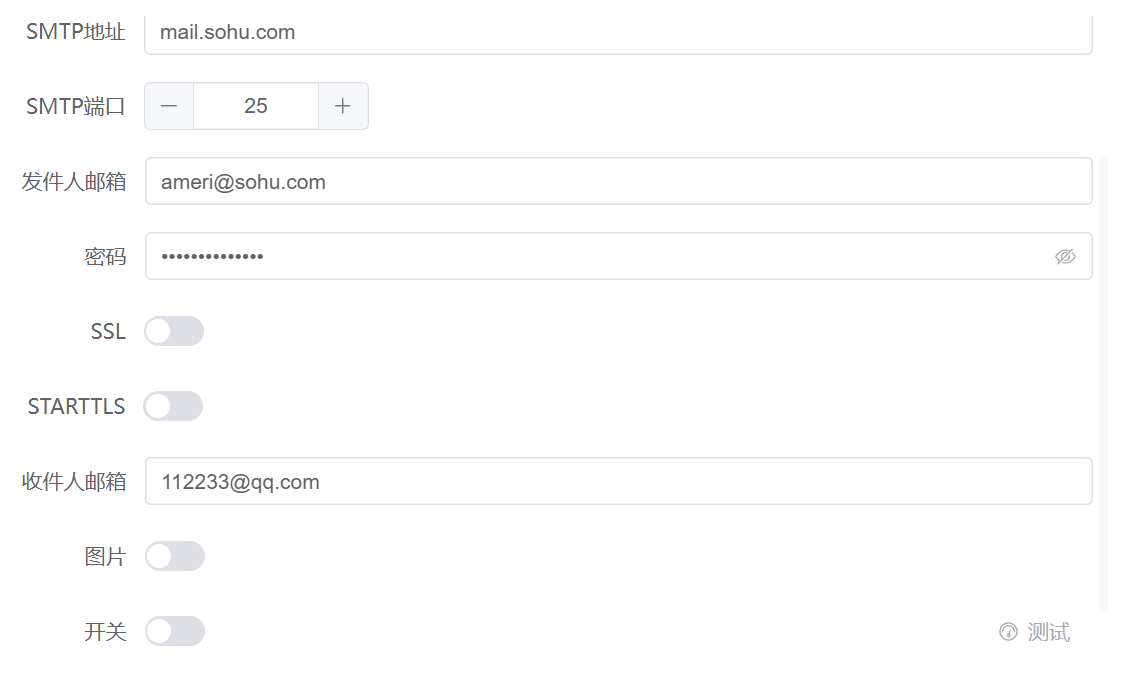 sohu邮箱无需开启SSL或STARTTLS,因为压根没有,开了反而可能会发送失败😅